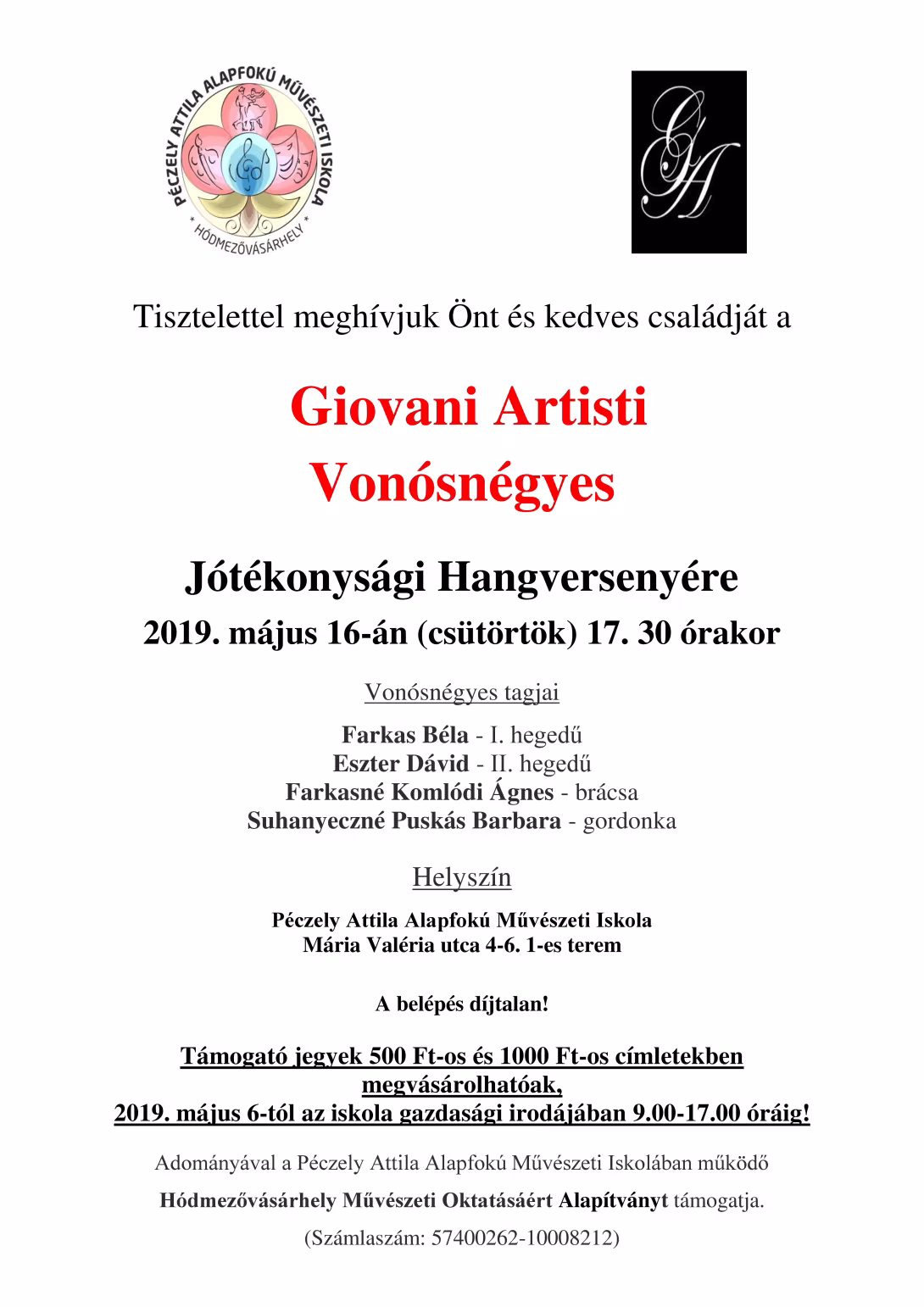 GIOVANI ARTISTI Vonósnégyes Jótékonysági Hangversenye