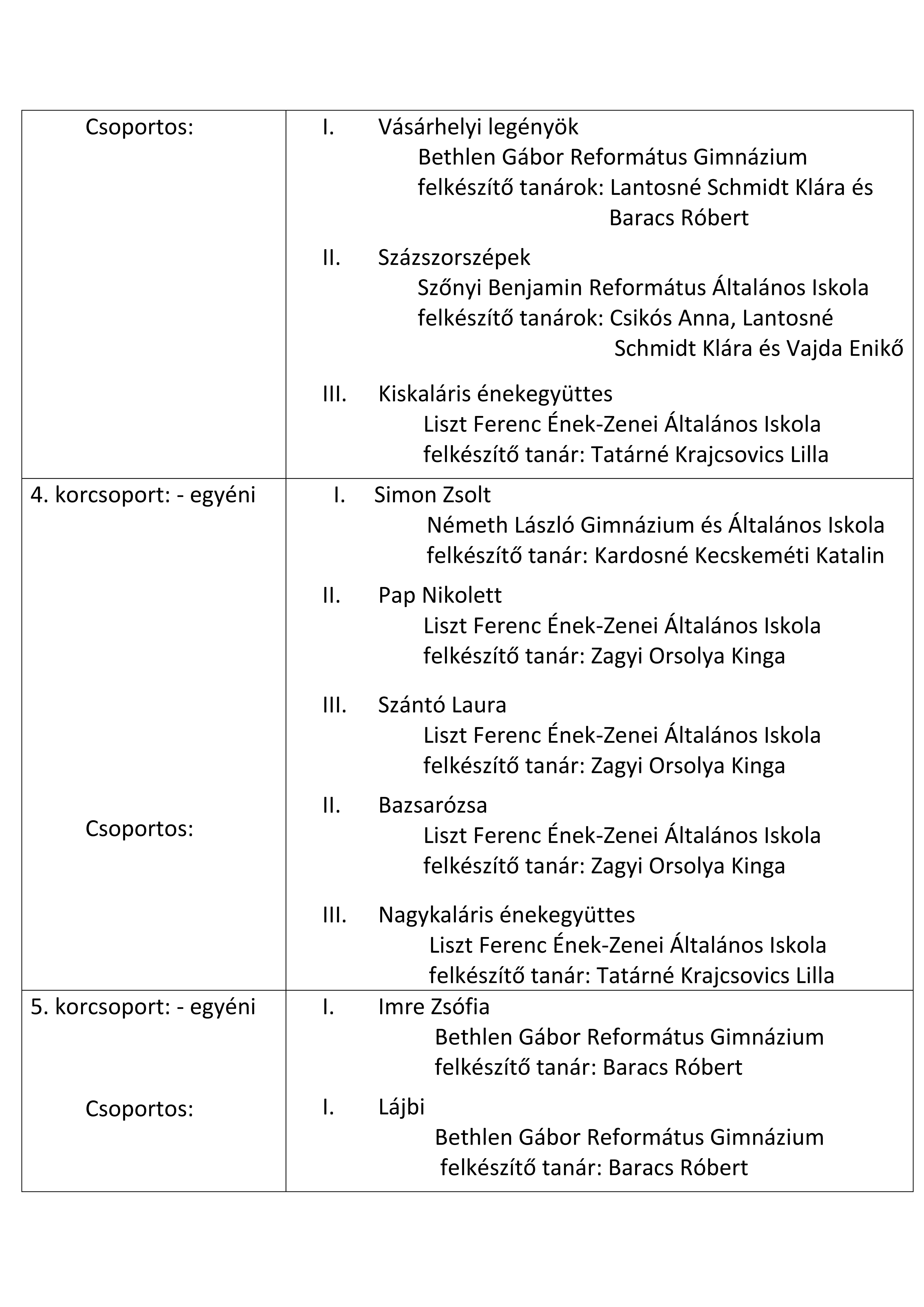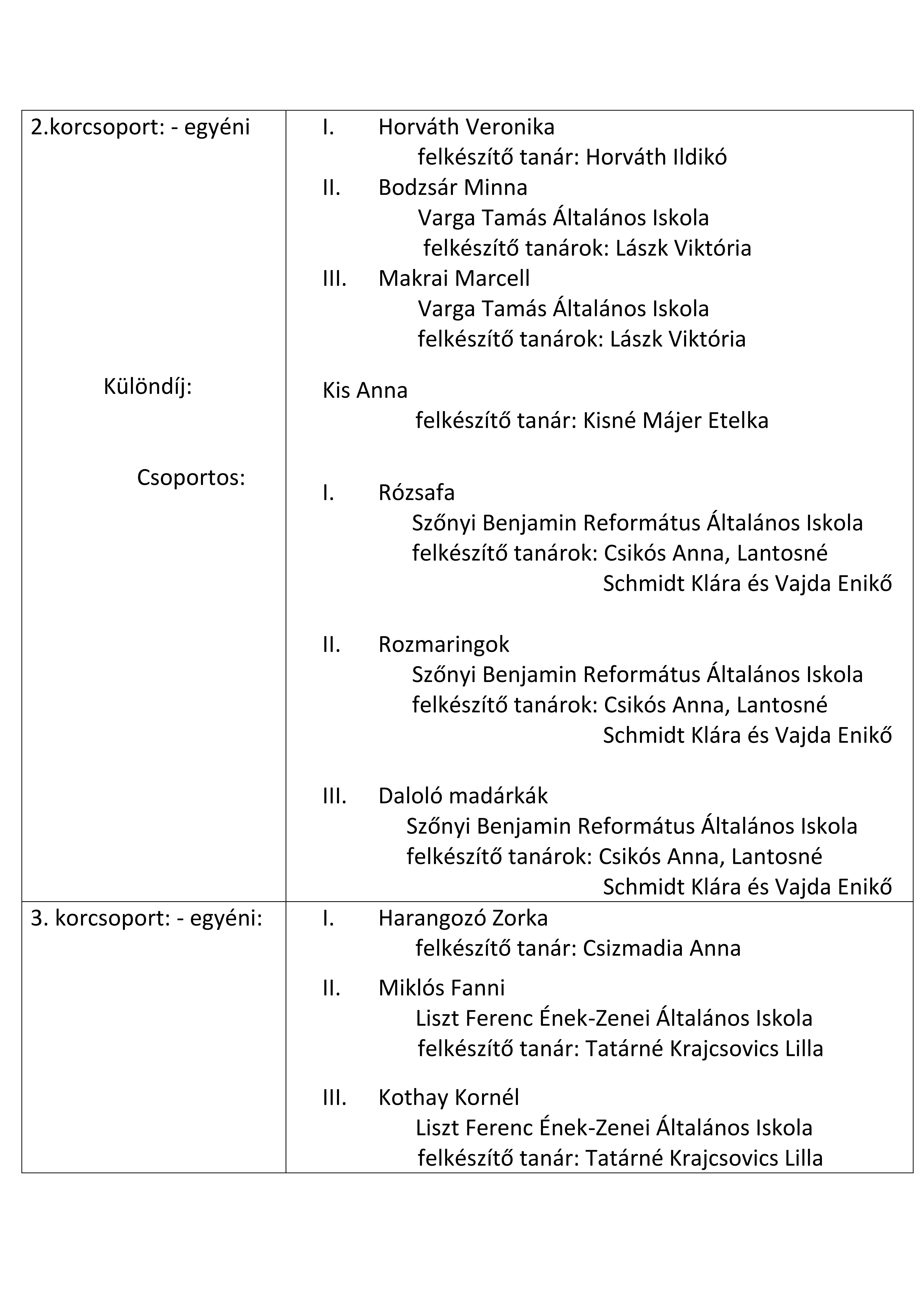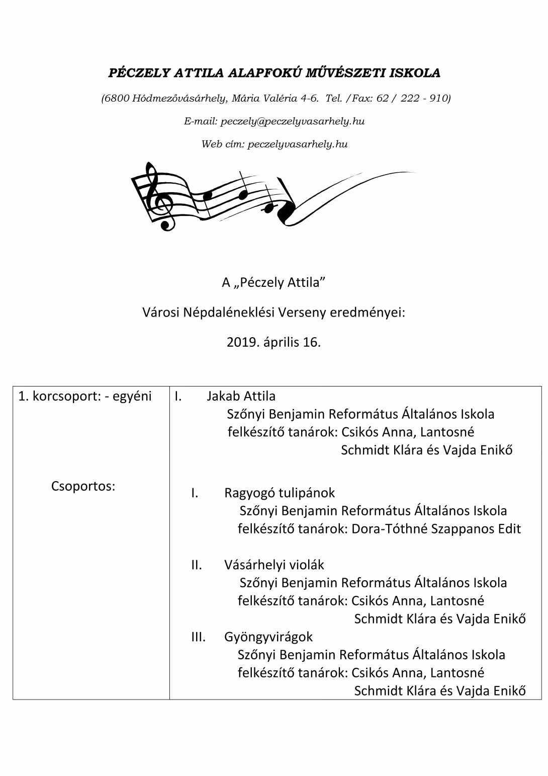 A "Péczely Attila" Városi Népdaléneklési Verseny eredményei