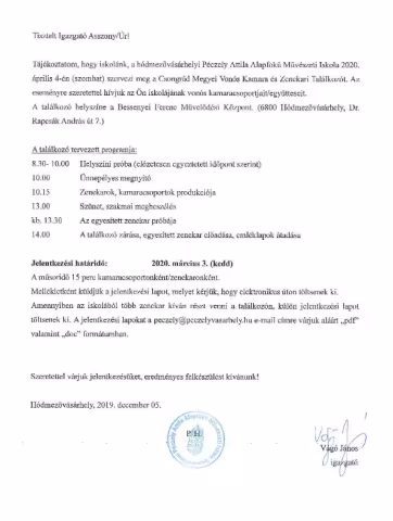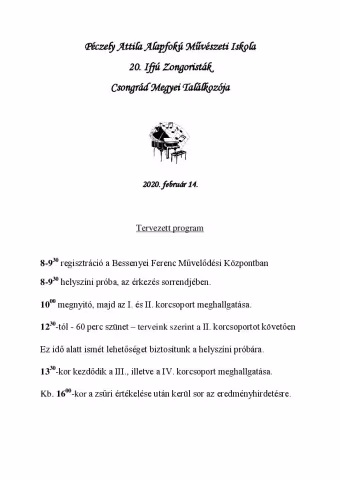 20. Ifjú Zongoristák Csongrád Megyei Találkozója - tervezett program